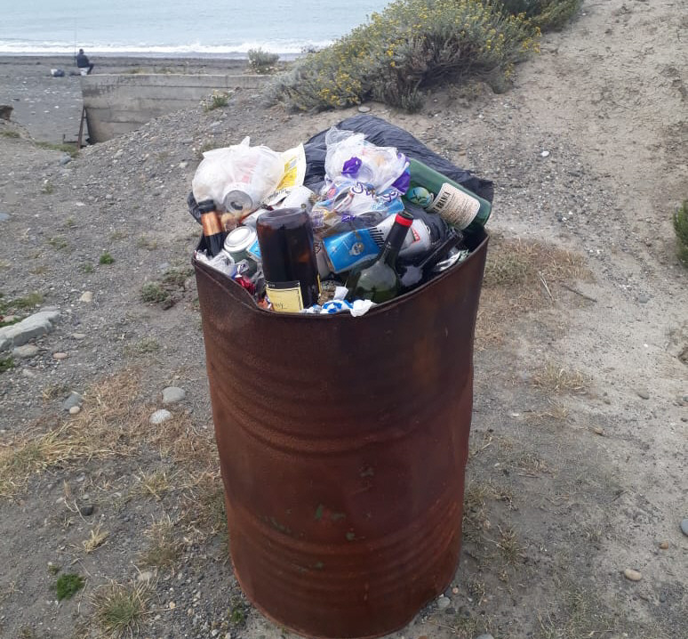El único cesto de basura que hay en Cabo Vírgenes