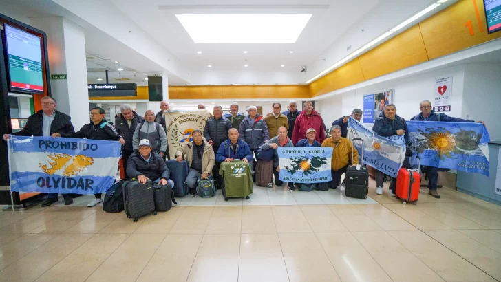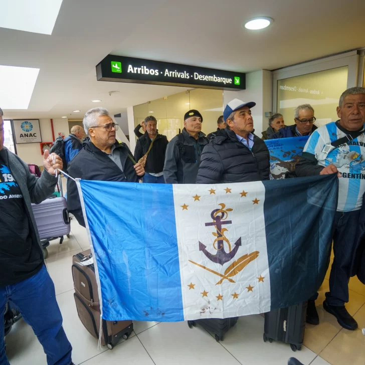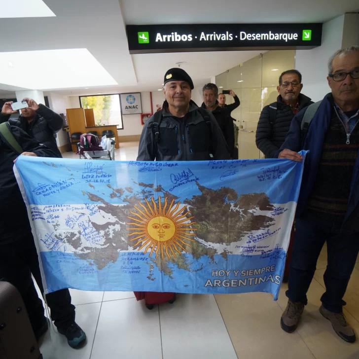 Los veteranos de guerra Luis Alfonzo Cabral, Víctor Ramón Acosta, Walter Rolón, Ricardo Luis Villordo, Julio César Moreira, Armando Franco Fernández, Juan Desiderio Barbona, Vicente Nicanor Sánchez, Félix Antonio Rivero, Francisco Fernández, Tomás Acosta Ederoto, Horacio Alberto López, Carlos Ignacio Reyero, Martín Serrudo, Juan Fernández, José Enrique Teijeiro, Francisco Ayala, Fidel Gómez, Julio Sotelo y Juan Carlos Benítez regresaron en la tarde de este sábado al continente después de seis días en las islas Malvinas.