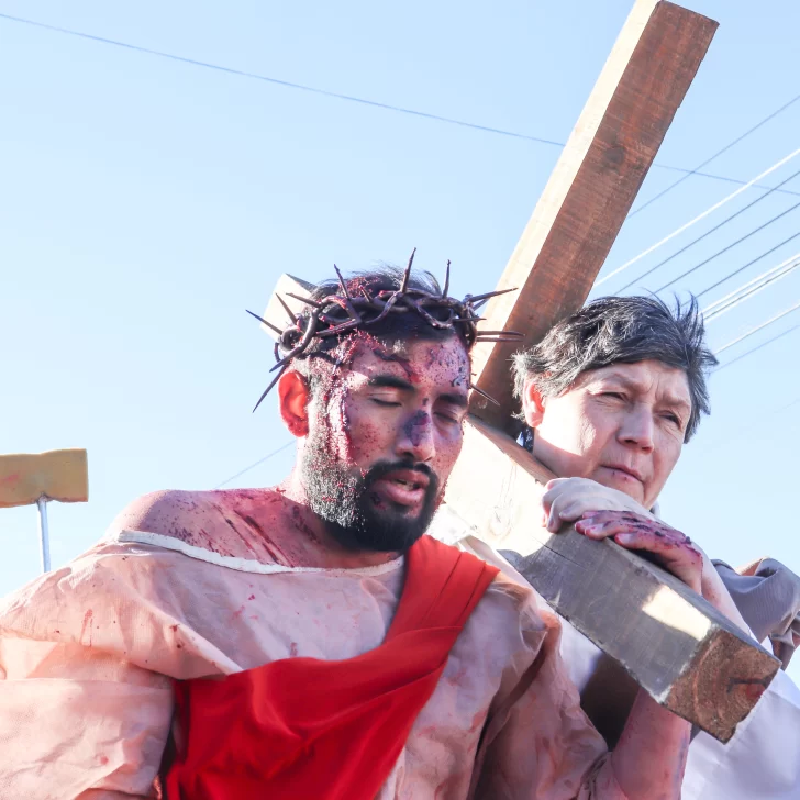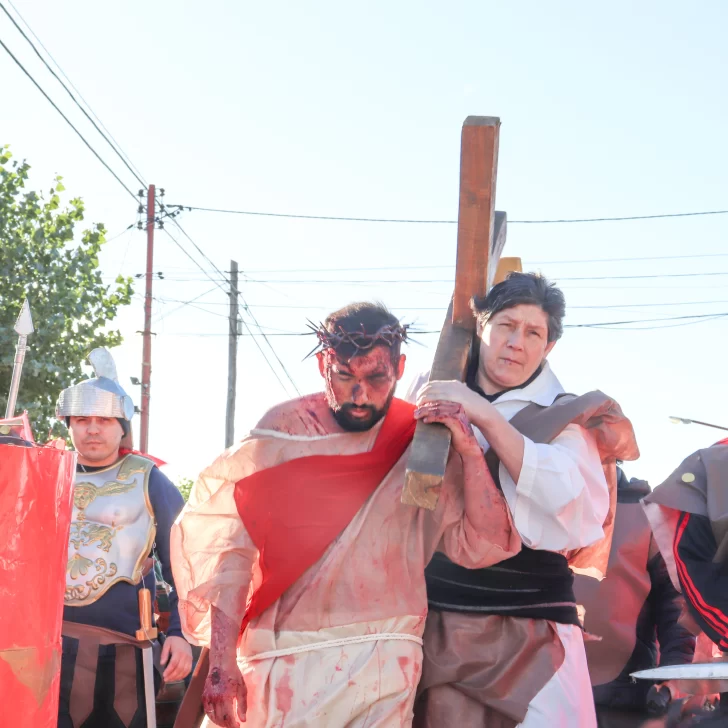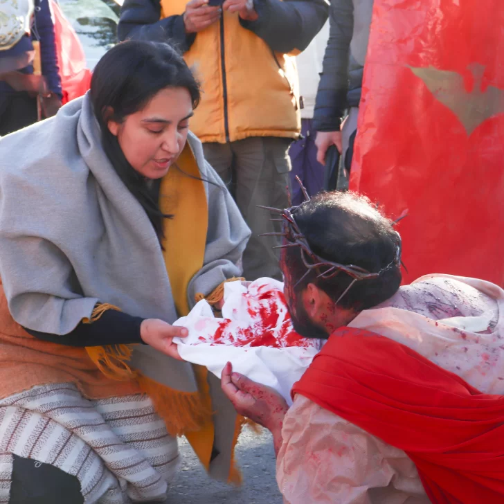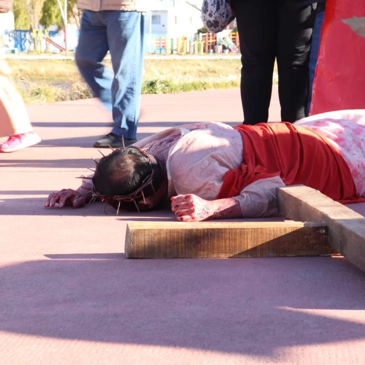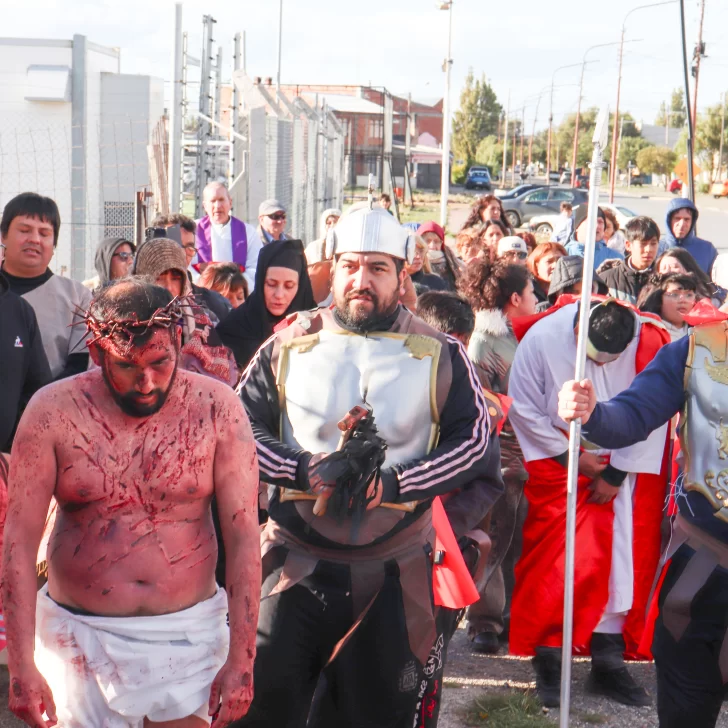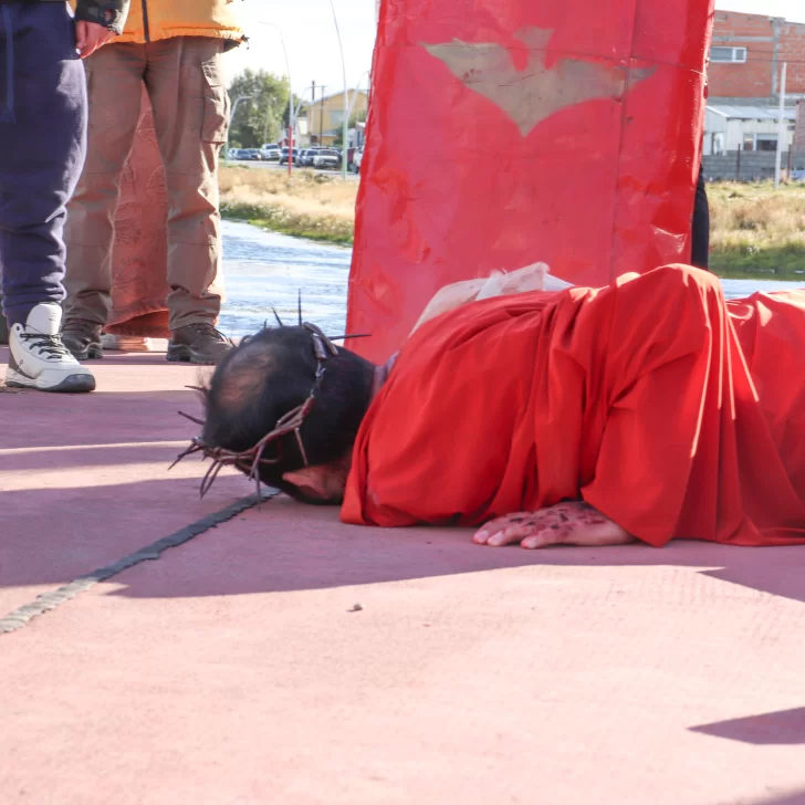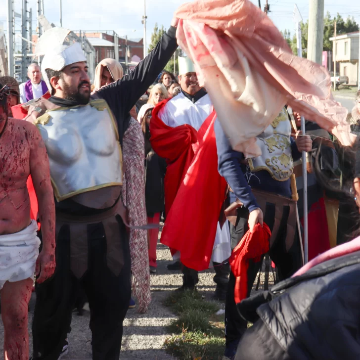 Cada una de las 14 estaciones que relatan la pasión, muerte y sepultura de Jesús fueron recreadas este Viernes Santo por las calles de Río Gallegos.