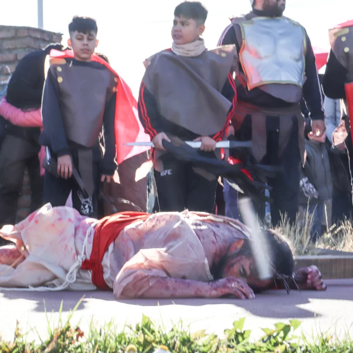 El Vía Crucis Viviente, que fue llevado adelante por la comunidad de la Parroquia San José Obrero y Santuario San Cayetano, llamó la atención de los vecinos, quienes se asomaron a las puertas y ventanas para observar la representación.