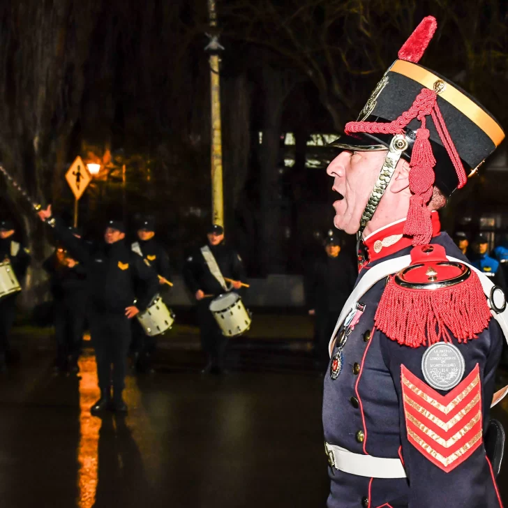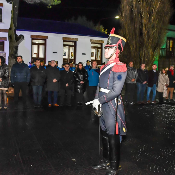 Fue el inicio de la semana del Paso a la Inmortalidad del General Don José de San Martín con la melodía de Aurora interpretada por la Banda de Música Policial “14 de Noviembre”, recibiendo la formación una sección de la XIra. Brigada Mecanizada del Ejército Argentino y cadetes del Departamento Escuela de Cadetes y la bandera flameando en la oscuridad de la mañana patagónica.