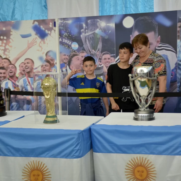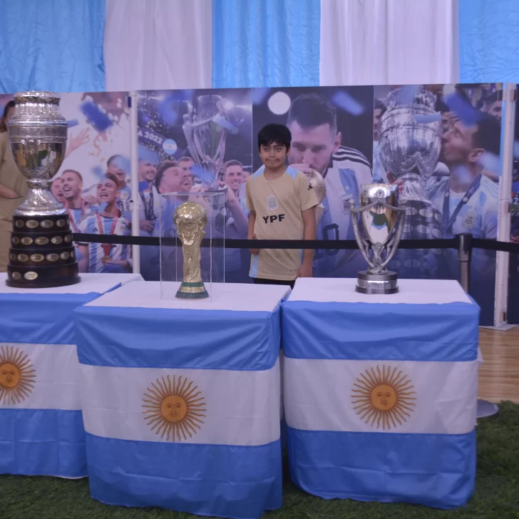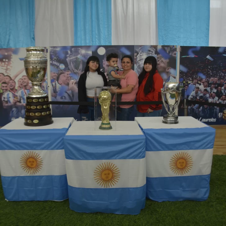 Cientos de familias riogalleguenses se acercaron al Gimnasio Municipal Juan Bautista Rocha (Río Gallegos) para disfrutar la muestra “Eternos Laureles“, donde se expusieron la “Copa del Mundo“, la “Finalissima” y la “Copa América“. Se trata de los trofeos que ganó la Selección Argentina de fútbol de la mano de Lionel Scaloni, Lionel Messi y compañía, convirtiéndose en el mejor equipo del mundo en la actualidad.