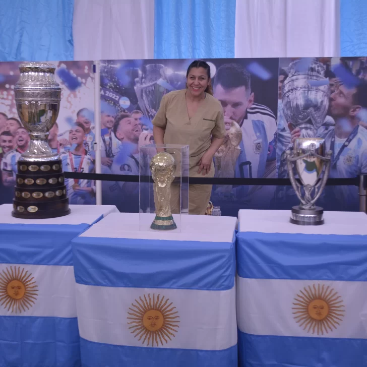 Las copas internacionales estuvieron acompañadas por un paseo temático que incluye imágenes de los momentos icónicos del mundial y gigantografías de los jugadores más importantes de la selección. La muestra será una oportunidad única para que la comunidad viva de cerca los trofeos que llenaron de alegría al pueblo argentino.