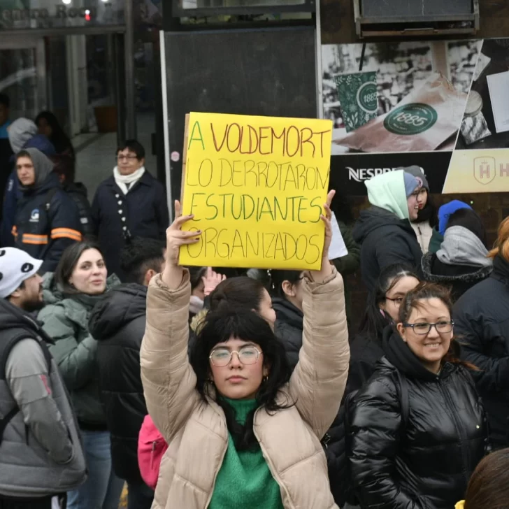 “No al veto de la ley de financiamiento universitario”, “La educación es un derecho”, “Universidad pública siempre” y hasta una referencia a Harry Potter: “A Voldemort lo derrotaron estudiantes organizados”, fueron algunas de las frases que se leyeron en los carteles exhibidos en las calles.