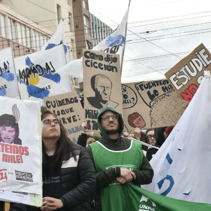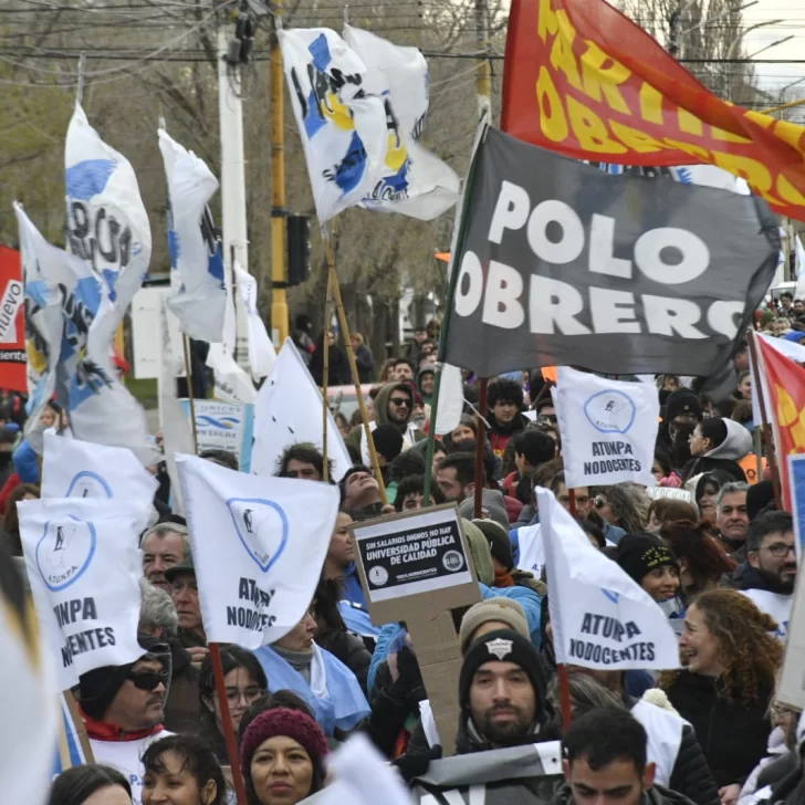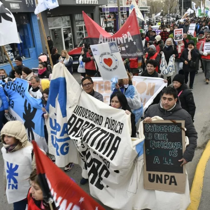 En ese marco, el centro de la capital santacruceña se colmó de docentes, no docentes, autoridades y estudiantes que reclamaron en defensa de la universidad pública y del sistema científico nacional.