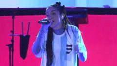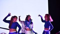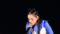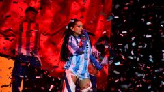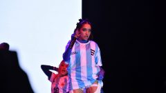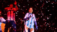 La artista de 22 años y sus bailarines se vistieron con las camisetas de Argentina y cantó la canción Berlín seguida de Discoteka y “Qué más pues?”, canción que cantó en la gala de los premios Latin Grammy en Las Vegas en junio de este año junto al colombiano J Balvin.