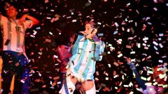 Para finalizar, rindió homenaje a “La Scaloneta” con un festejo a todo celeste y blanco, donde también se escuchó himno de la Selección argentina: “Muchachos, ahora nos volvimos a ilusionar“.