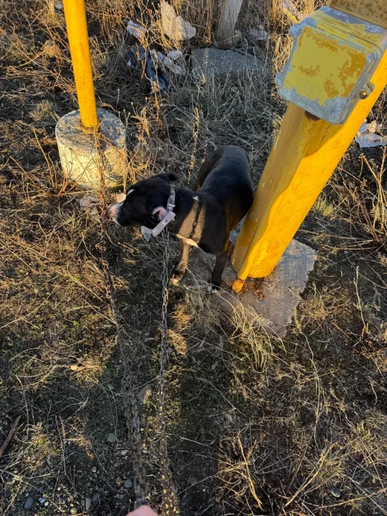 Una perrita que estaba encadenada en la ruta fue rescatada en la tarde de este domingo por las jóvenes proteccionistas de “Valentín en cada huella” de Río Gallegos.
