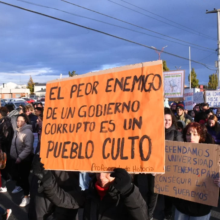 La movilización de este martes contó igualmente con la presencia de agrupaciones sindicales y de referentes políticos, entre ellos el intendente de la capital santacruceña, Pablo Grasso. “La licuadora y motosierra de Milei no fueron una joda”, aseguró.