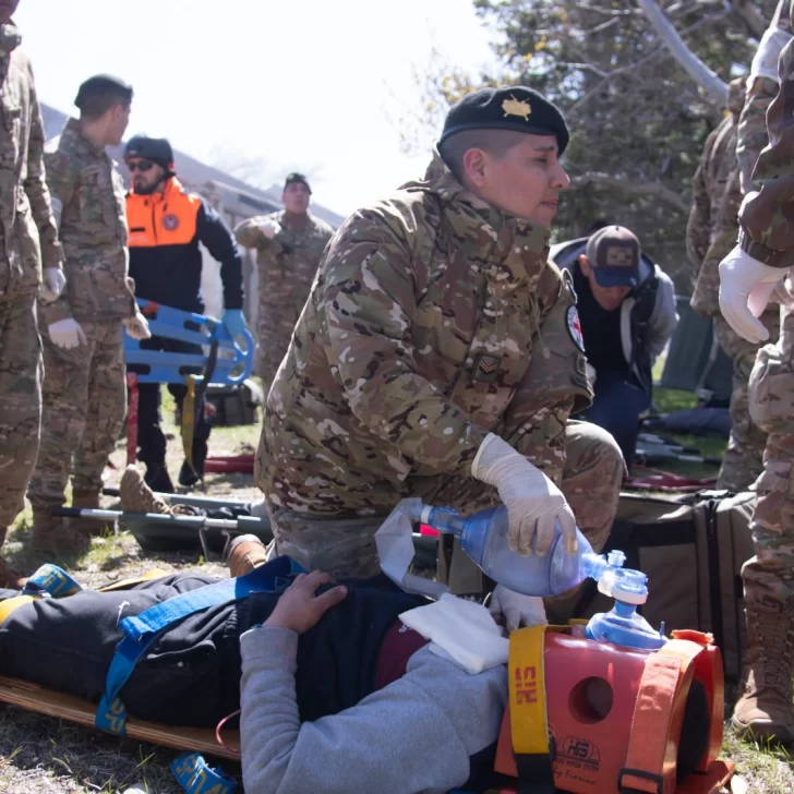 Ahora sí, comenzaba el ejercicio para el cual el Ejército Argentino trasladó un helicóptero, doce camiones blindados, seis ambulancias y más de cien militares. Con base en la catástrofe, ocurrieron 4 escenarios diferentes.