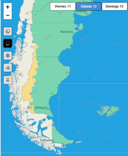Por otro lado, los departamentos de Lago Buenos Aires, Río Chico, Lago Argentino, Corpen Aike y Güer Aike experimentarán vientos del noroeste con velocidades entre 45 y 60 km/h, mientras que las ráfagas podrían alcanzar hasta 100 km/h. Este fenómeno también se repetirá en toda Tierra del Fuego.