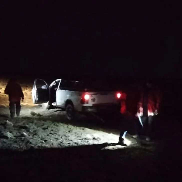 Con temperaturas bajo cero y luego de varias maniobras, lograron rescatar la camioneta encajada y trasladarla hasta la estancia El Vapor, ya que tenía roto el embriague por los reiterados intentos de desencajarla.