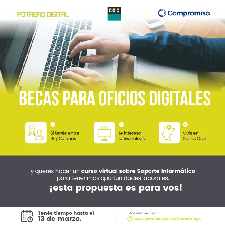 Con el objetivo de ampliar las oportunidades de formación y empleo para jóvenes de la provincia, Compañía General de Combustibles (CGC), junto a Fundación Compromiso, impulsan una nueva convocatoria a becas de formación en oficios digitales a través del programa Potrero Digital.