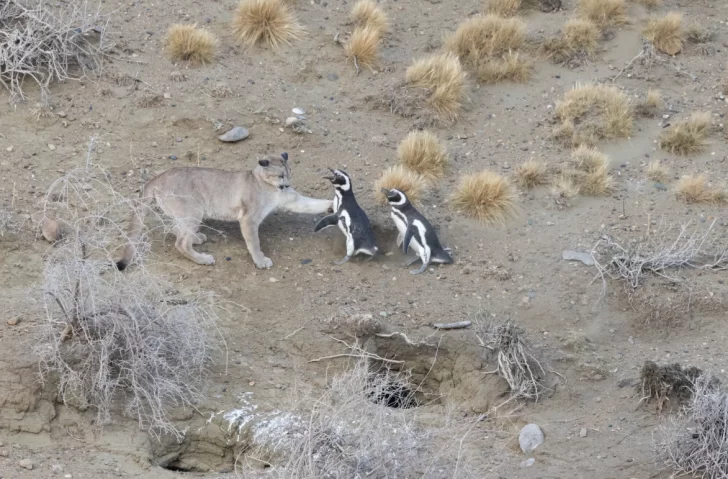 Tradicionalmente, los pingüinos de Magallanes enfrentan amenazas en el mar, como focas y orcas, mientras que en tierra firme suelen encontrar seguridad al desplazarse en grupo. Sin embargo, en Monte León, estas aves marinas no voladoras se convirtieron en presa de un depredador terrestre inesperado: el puma (Puma concolor).