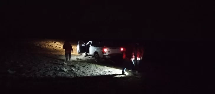 Con temperaturas bajo cero y luego de varias maniobras, lograron rescatar la camioneta encajada y trasladarla hasta la estancia El Vapor, ya que tenía roto el embriague por los reiterados intentos de desencajarla.