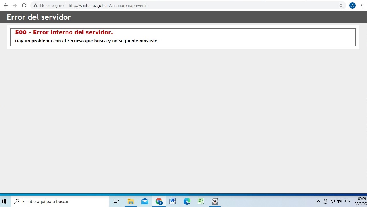 A las 00:09, era imposible ingresar al sitio web en cuestión: santacruz.gob.ar/vacunarparaprevenir, según pudo constatar La Opinión Austral y algunos lectores que se contactaron a la redacción.