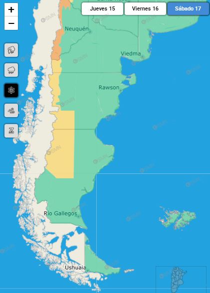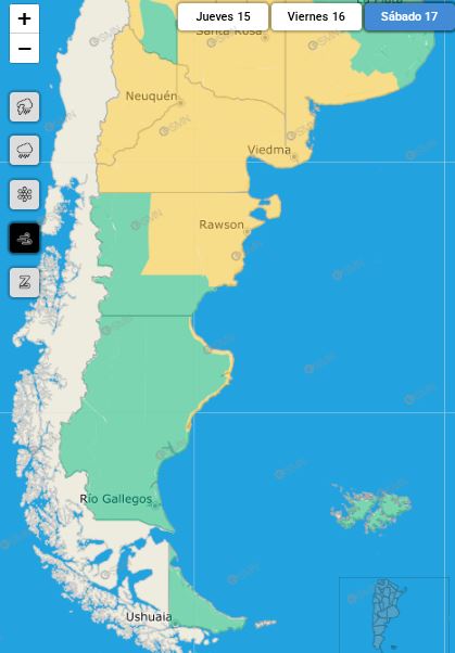 También el 17 de mayo, las costas de los departamentos de Magallanes y Deseado estarán expuestas a vientos del sur con velocidades entre 45 y 60 km/h, y ráfagas que podrían superar los 90 km/h. Los vientos fuertes afectarán igualmente gran parte de Chubut, toda Neuquén, Río Negro y La Pampa, con diversos niveles de potencia.