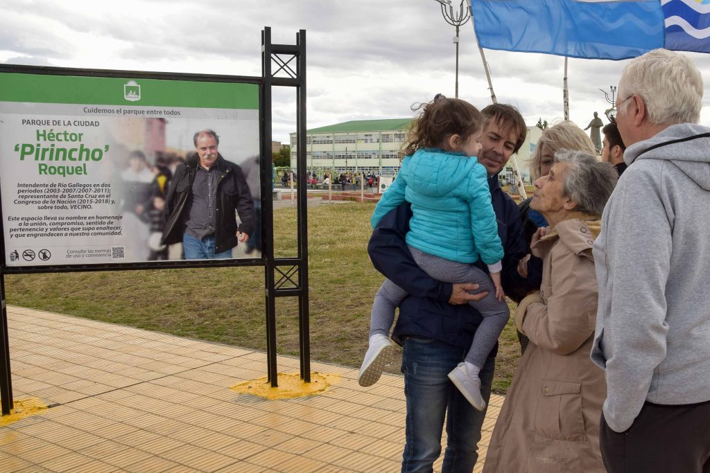 Fue esta tarde en la costanera local, donde se emplaza el parque de la ciudad Héctor “Pirincho” Roquel. Allí el intendente Roberto Giubetich junto a la familia de quien fuera por dos mandatos jefe comunal de Río Gallegos, descubrieron el cartel que da nombre a ese espacio recreativo de la capital provincial.