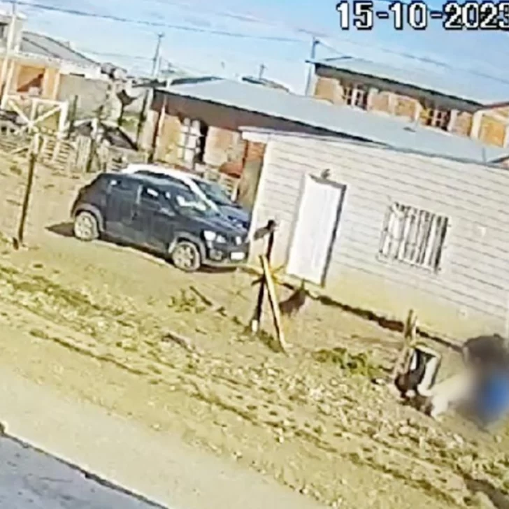 Lo que continúa en el video es la imagen de la vecina que sale desde el interior de su vivienda con un palo de escoba, tal como ella misma describió días atrás a La Opinión Austral, con la idea de separar a los perros del ataque a “Jorgito” que, para ese entonces, ya tenía lastimados ambos brazos y había perdido el dedo gordo de la mano producto de las mordidas.