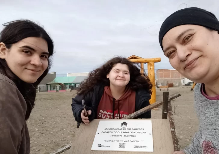 Nacido en Corrientes, desde el año 2006 prestaba servicios en la provincia. Esta semana, sus hijas colocaron una placa a su nombre en la plaza de troncos del barrio Che Guevara y lo hicieron acompañada de Melina, amiga de la familia.
