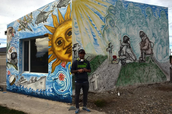 La obra puede verse en la intersección de las calles Paradelo y Tamel Aike, detrás de la Comisaría Tercera de nuestra ciudad. Allí, dos murales reflejan el homenaje al ARA San Juan y a los combatientes caídos en la Guerra de Malvinas. Conoce a uno de sus artistas que brindó su habilidad para la creación.