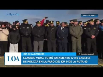 El gobernador de Santa Cruz, Claudio Vidal, presidió el acto por el Día de la Bandera Nacional en el histórico faro de Cabo Vírgenes, el punto 0 de la República Argentina.