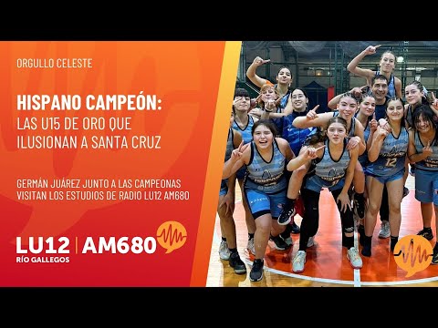 Germán Juárez, DT de Hispano Americano U15 femenino, junto a las campeonas Lucila Juárez, Candela Parolin y Jania Muñoz, visitan los estudios de Radio LU12 AM680 tras conquistar la Copa de Oro de la Liga Provincial de Básquet.