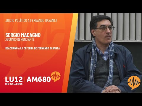 Sergio Macagno cuestionó la estrategia defensiva y advirtió sobre presiones institucionales en la Sala Juzgadora por parte del abogado Alejandro Ruggero, quien representa al vocal de Tribunal Superior de Justicia de Santa Cruz suspendido. Para el denunciante la defensa de Basanta en el Juicio político fue “temeraria” y llegó casi al punto de “chantaje o extorsión”. Se lo acusa de haber aceptado el cargo sin cumplir con la cantidad de años de ejercicio de la abogacía que requiere la ley para ese cargo.