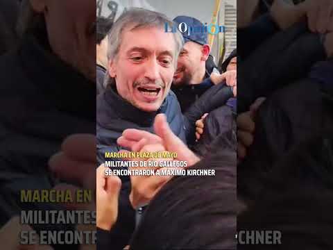 📍Durante la multitudinaria marcha en Plaza de Mayo en apoyo a Cristina Fernández, militantes de Río Gallegos se cruzaron con @maximockirchner , quien saludó entre aplausos y cánticos de “¡Santa Cruz!”. Con una sonrisa, respondió: “¡Vamos compañeros!” y se tomó un momento para conversar con uno de ellos ✊.