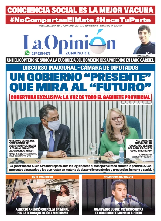 La gobernadora Alicia Kirchner repasó ante los legisladores el trabajo realizado durante la pandemia. Los proyectos alcanzados y los que restan en materia de desarrollo económico y productivo, humano y social.