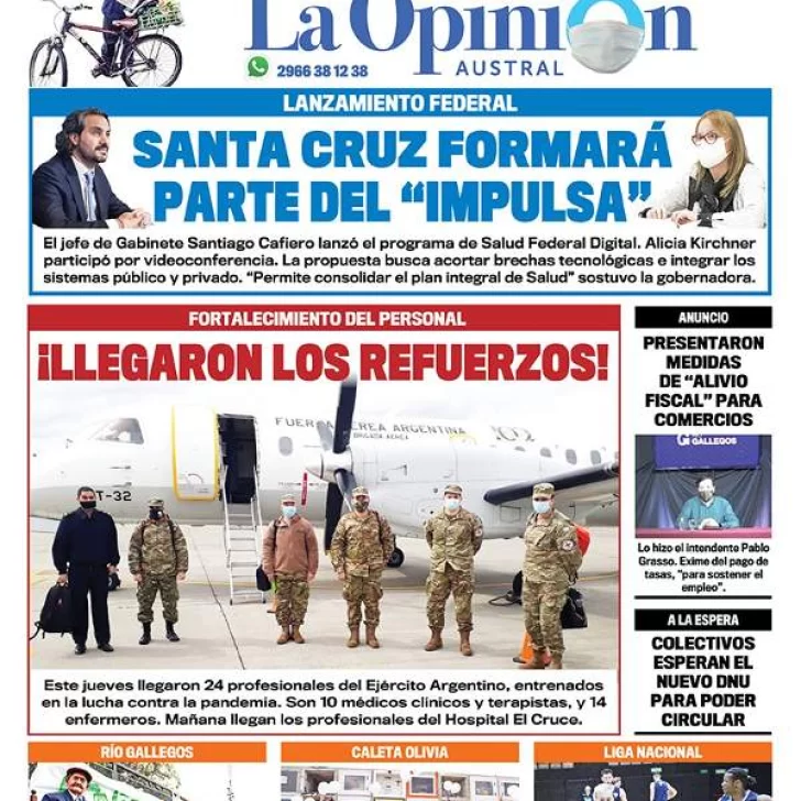 Este jueves llegaron 24 profesionales del Ejército Argentino, entrenador en la lucha contra la pandemia. Son 10 médicos clínicos y terapistas, y 14 enfermeros. Mañana llegan los profesionales del Hospital el Cruce.