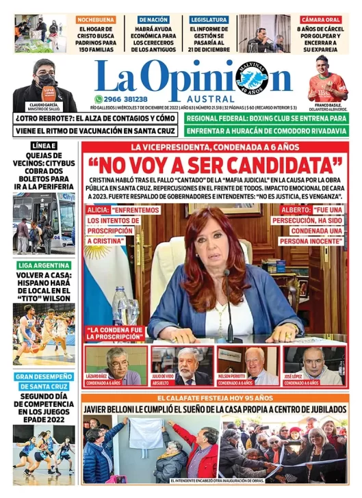 LA VICEPRESIDENTA, CONDENADA A 6 AÑOS